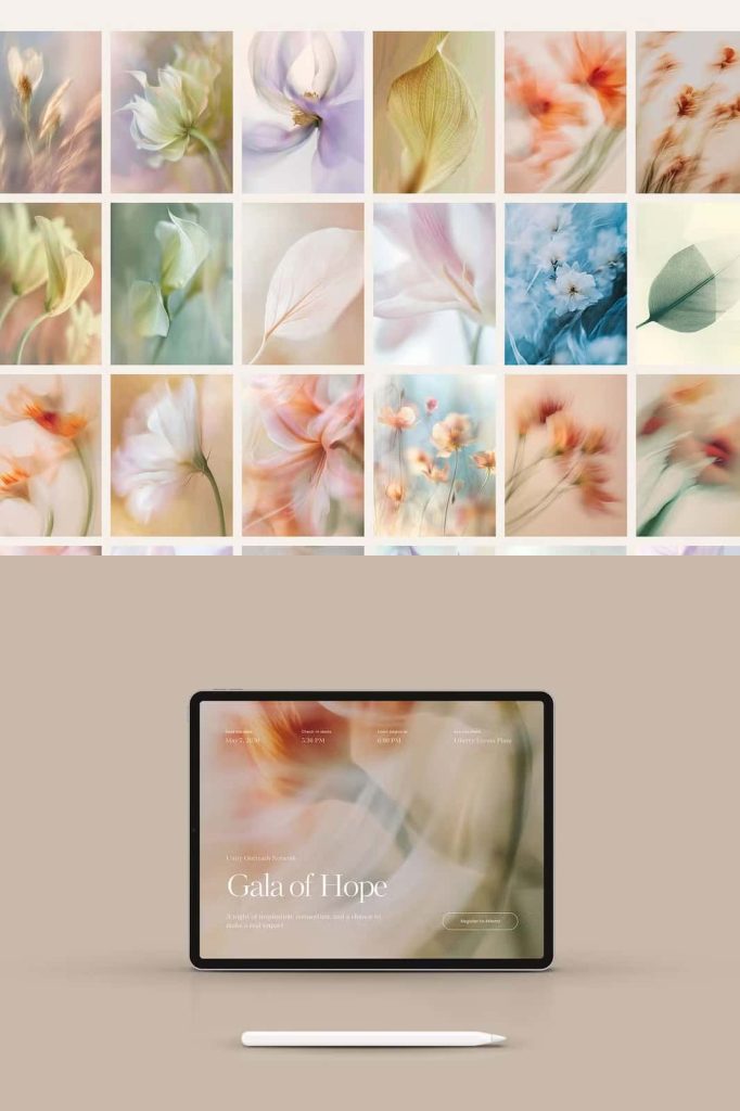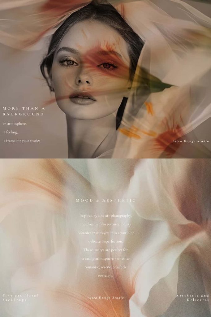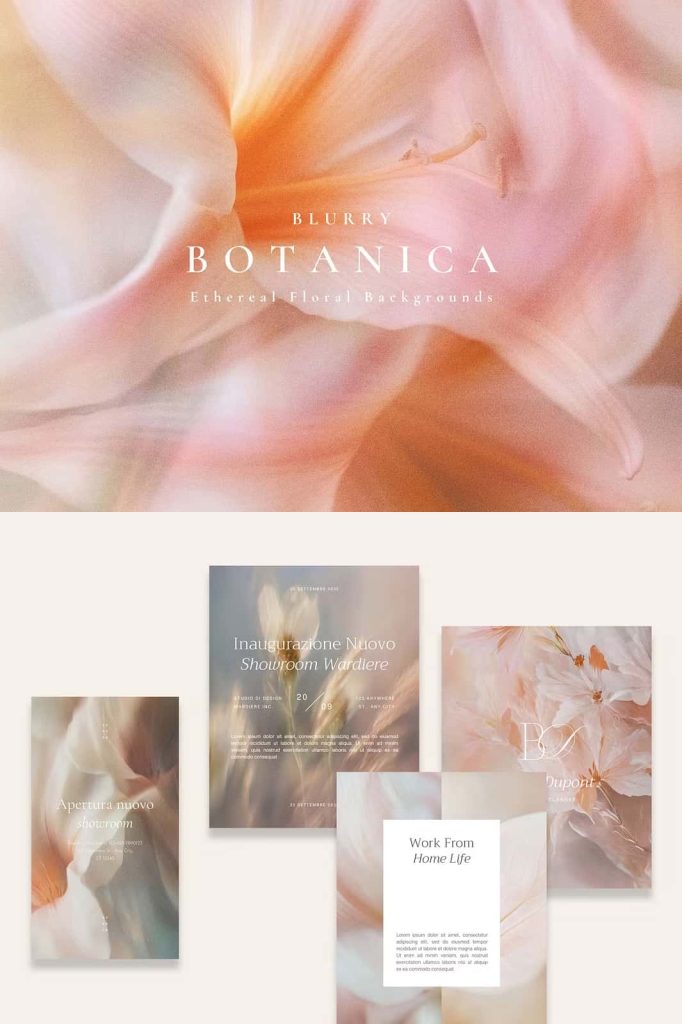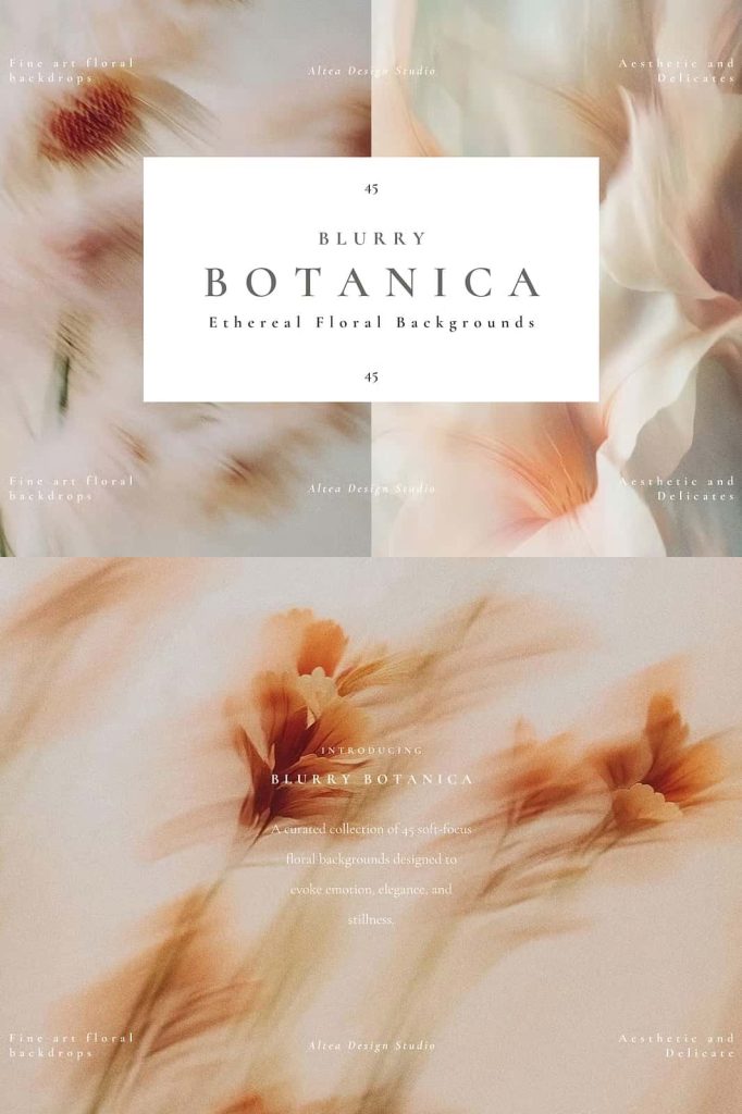 Each background captures the quiet beauty of nature through subtle blur, light diffusion, and fluid color transitions. Florals and foliage dissolve into abstract forms, creating a sense of depth without overwhelming detail. The result feels dreamy and expressive, perfect for projects that call for warmth, sensitivity, and sophistication.